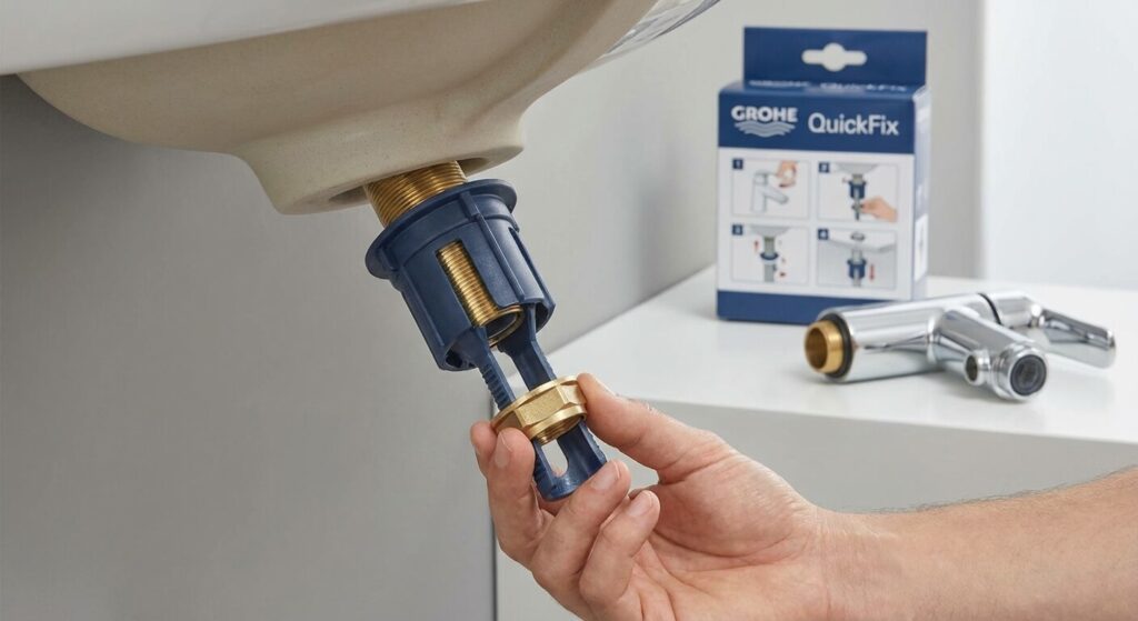 Le système QuickFix de Grohe a été inventé pour simplifier la vie des plombiers et des bricoleurs. Au lieu de visser un écrou en laiton sur 10 centimètres de tige filetée sous un évier inaccessible, ce système permet de faire glisser l’écrou jusqu’en haut et de ne le visser que sur le dernier centimètre. Sur le papier, c’est génial. Dans la réalité, de nombreux utilisateurs rencontrent des difficultés : l’écrou qui glisse et ne serre pas, ou pire, impossible à redescendre lors du démontage. Si vous luttez sous votre lavabo avec cette bague en plastique grise, voici comment dompter le mécanisme.