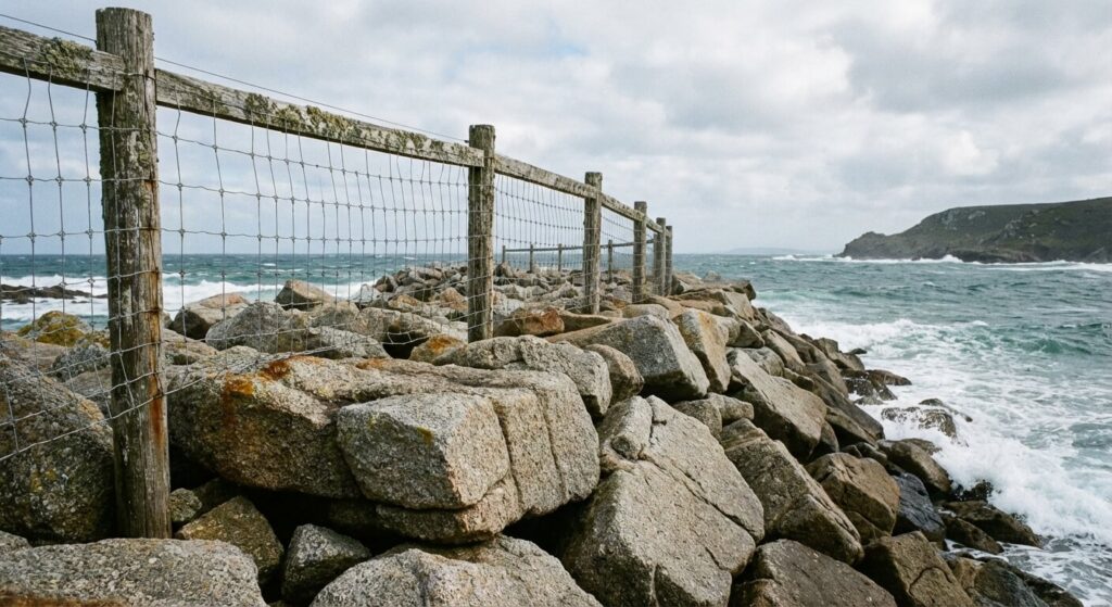 • ⚠️ Stabilité : Un enrochement « travaille » et bouge légèrement avec le temps. Une clôture rigide fixée directement dessus risque de se déformer ou de casser les scellements.
