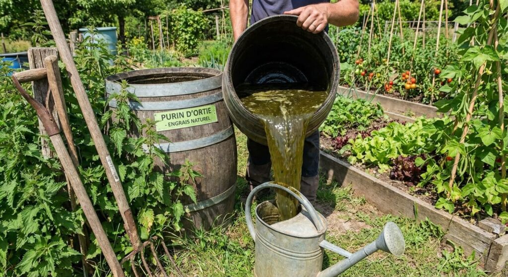 Paradoxalement, ce qui est mauvais pour vos légumes peut être utile ailleurs. Un purin d’ortie pourri, utilisé pur, est un désherbant naturel efficace. L’excès d’azote et d’ammoniac brûle les tissus végétaux. Vous pouvez le verser sur les allées gravillonnées ou entre les dalles pour éliminer les adventices. Attention toutefois, cela polluera temporairement le sol en nitrates, ne plantez rien derrière immédiatement.